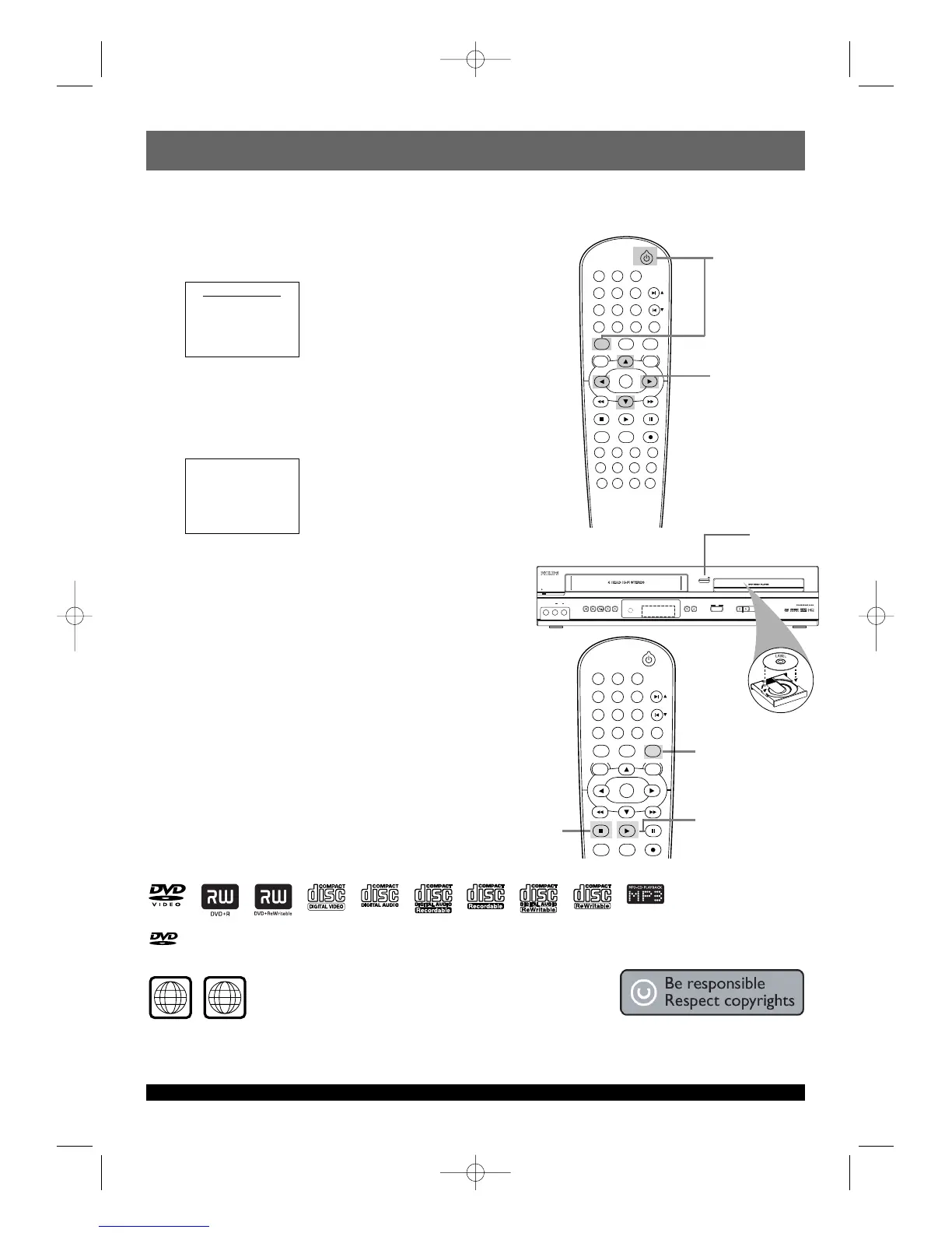 the front of the DVD/VCR. The TV display shown below will appear.