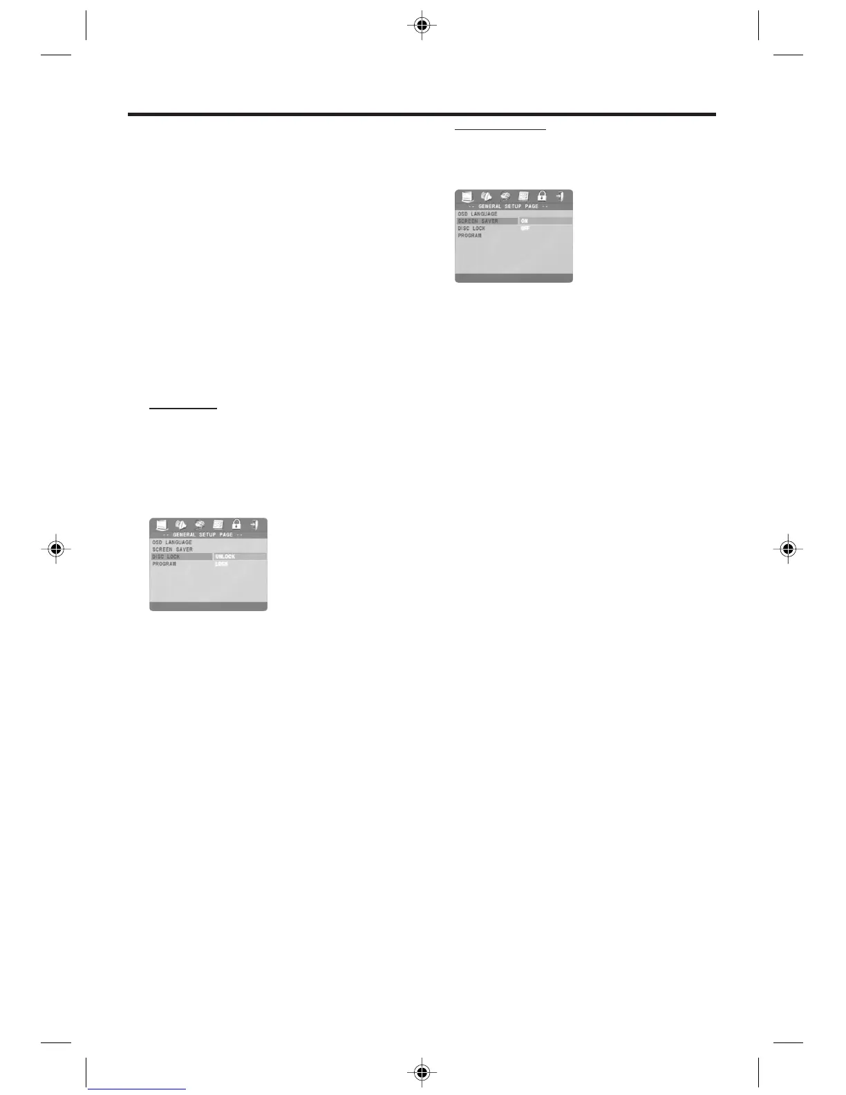 1 Press the 34 keys to highlight DISC LOCK in the