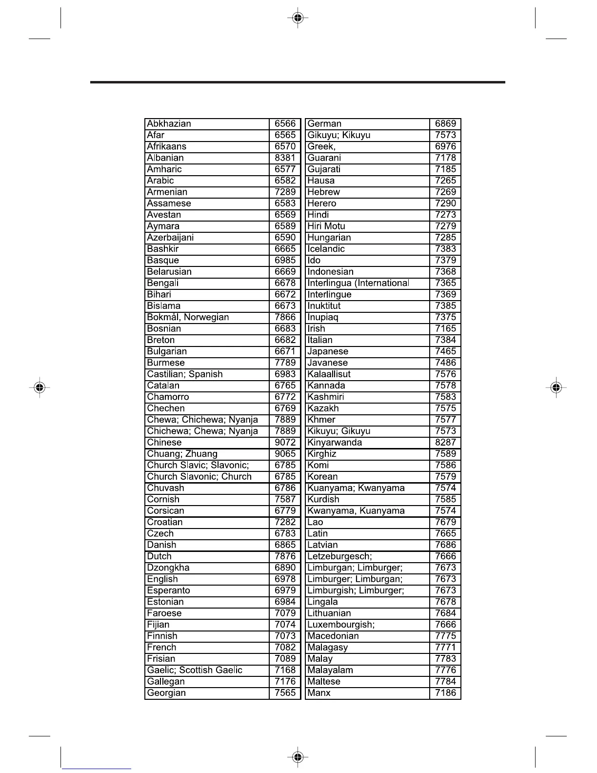 Philips DVP320/69 - Language Codes