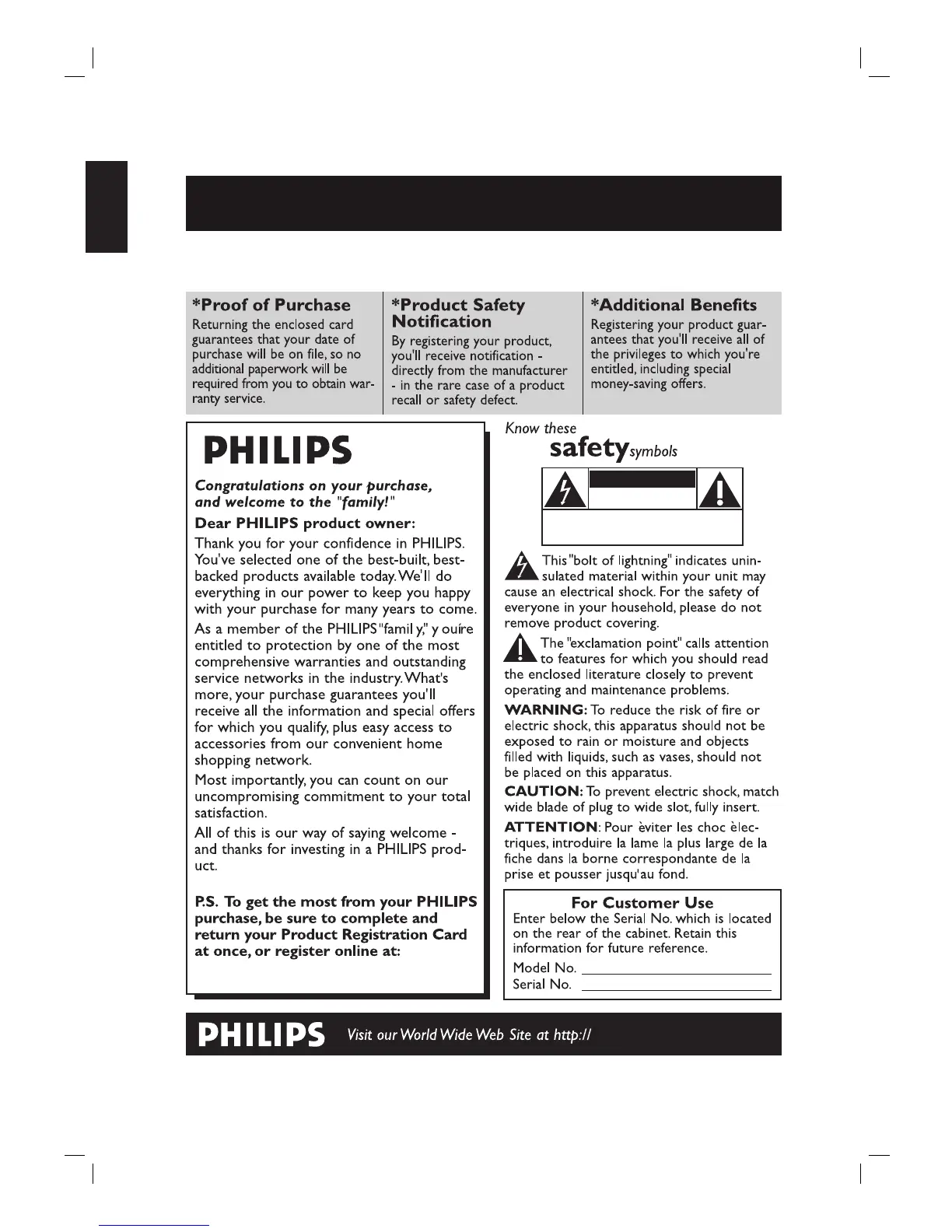 Complete and return your Product Registration Card at once, or register online at www.philips.com/welcome to