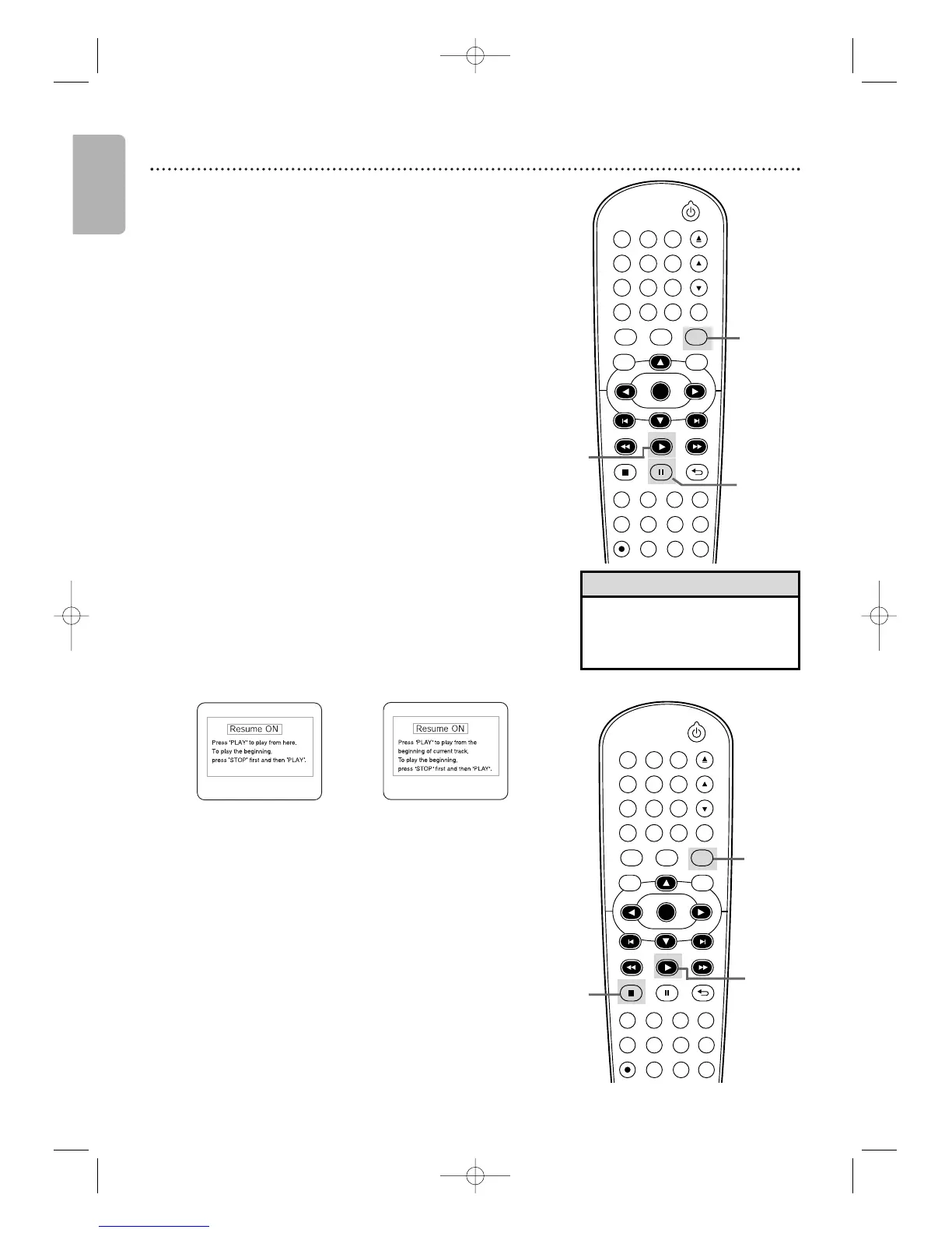 following Resume message will appear on the TV screen.