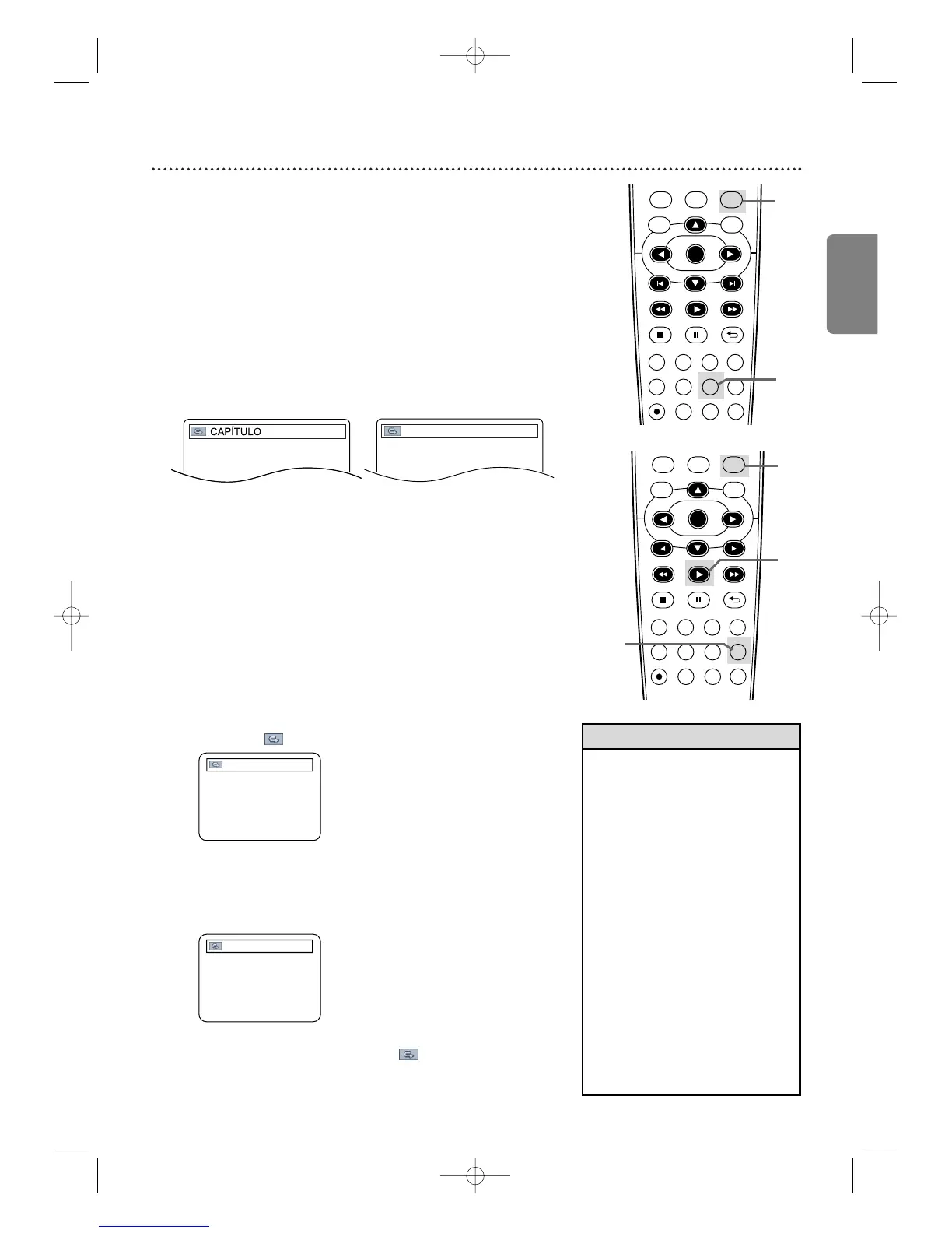 En un DVD, seleccione CAPÍTULO,TÍTULO o APDO. En un CD