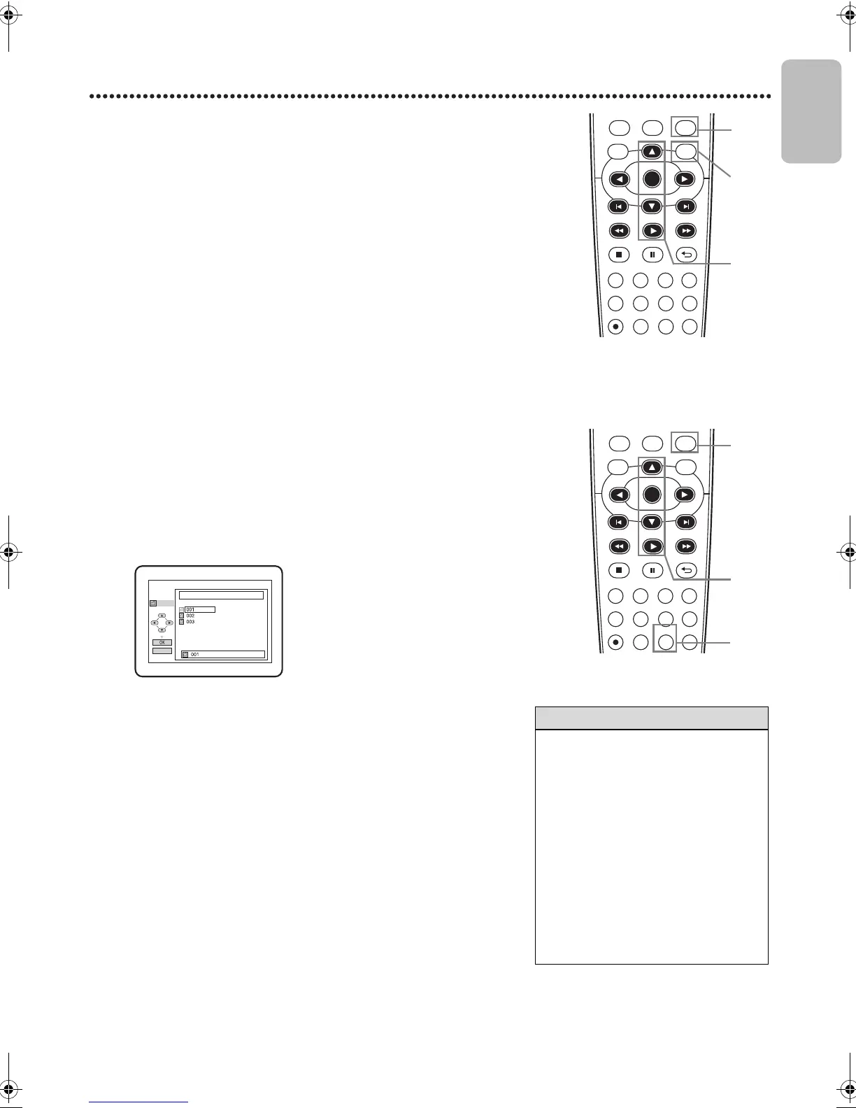 Press DISCMENU during MP3/JPEG playback. A File List will