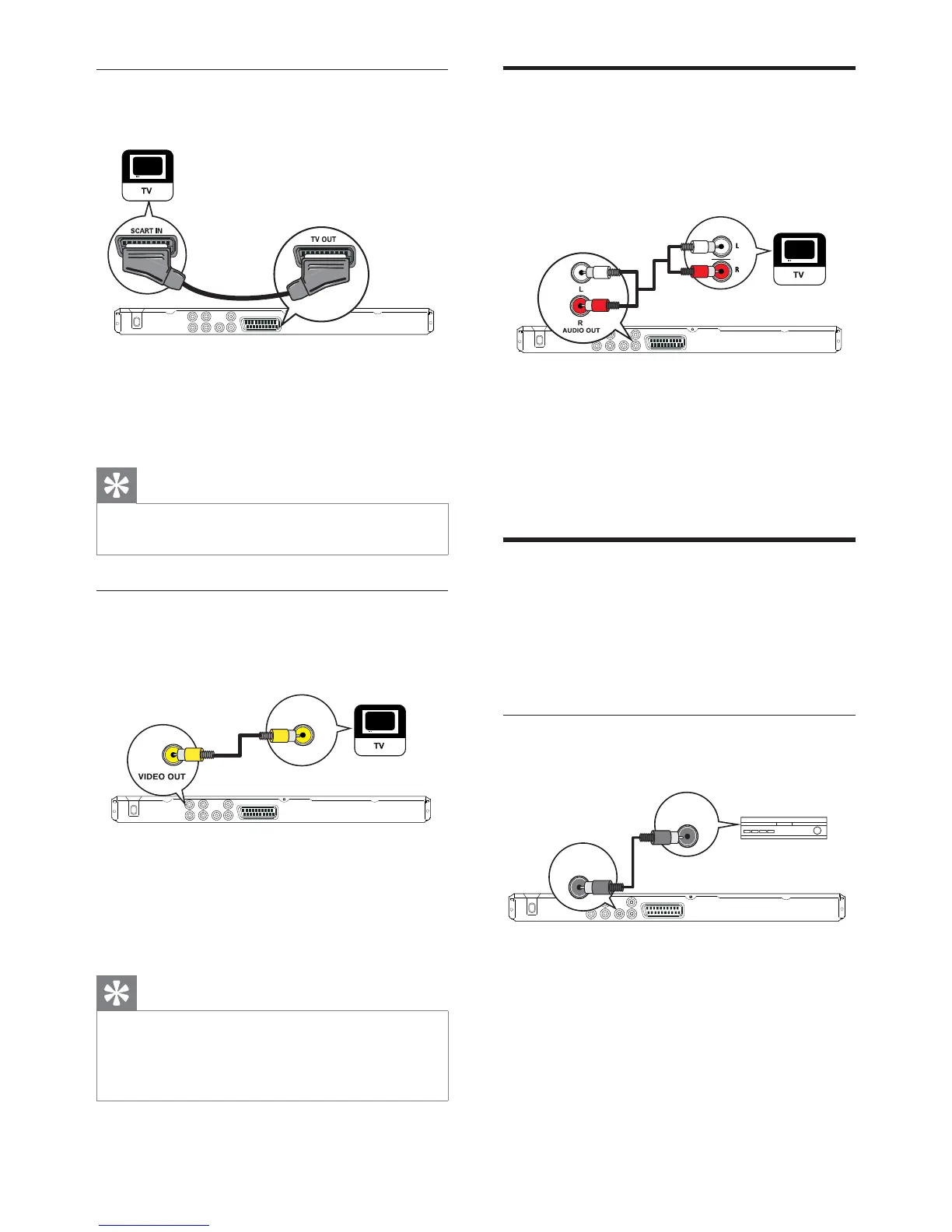 1 Connect a scart cable (not supplied) to the