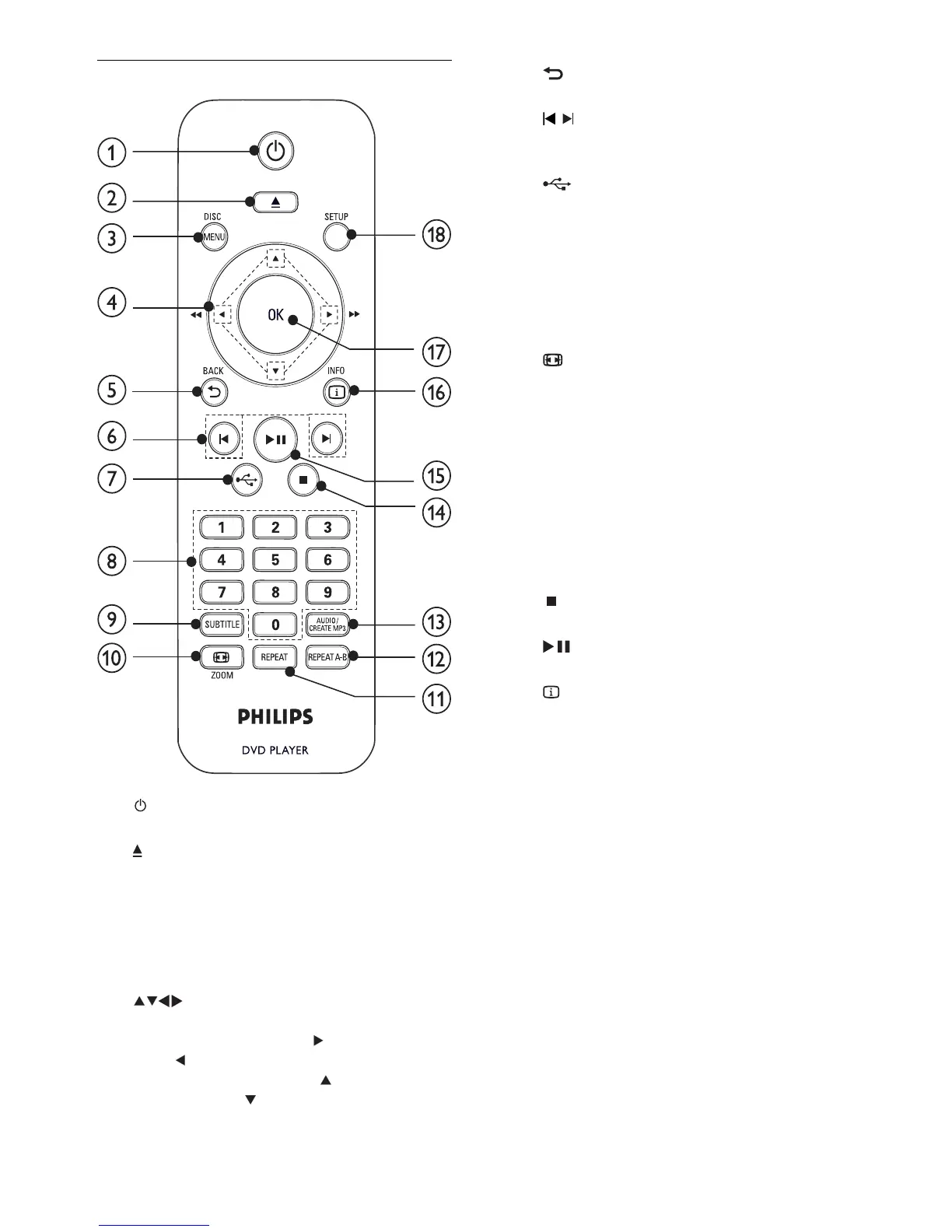 Start, pause or resume disc play.•