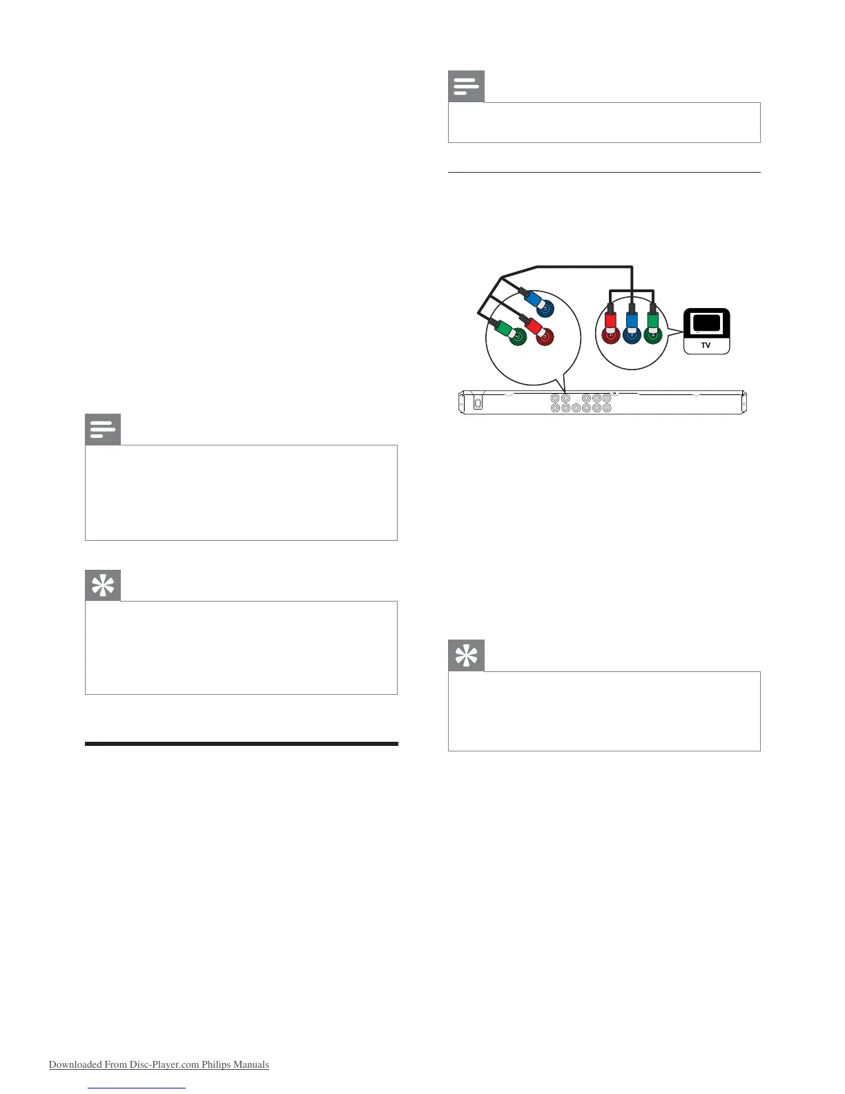 1 Connect the component video cables (not