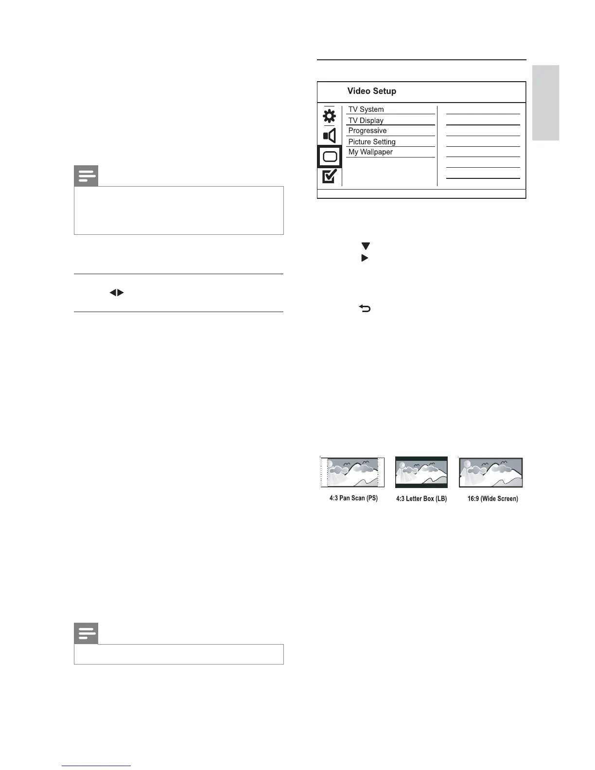 • [4:3 Letter Box] - For a 4:3 screen TV: wide-