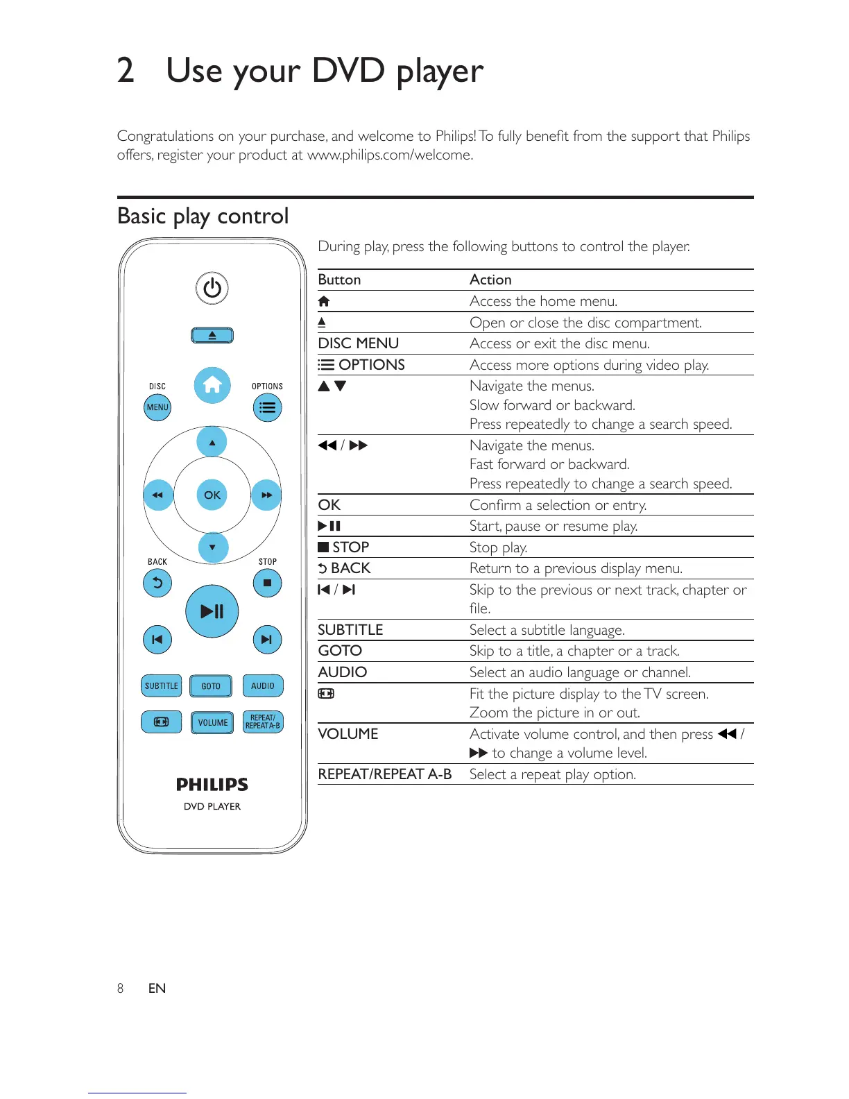 offers, register your product at www.philips.com/welcome.