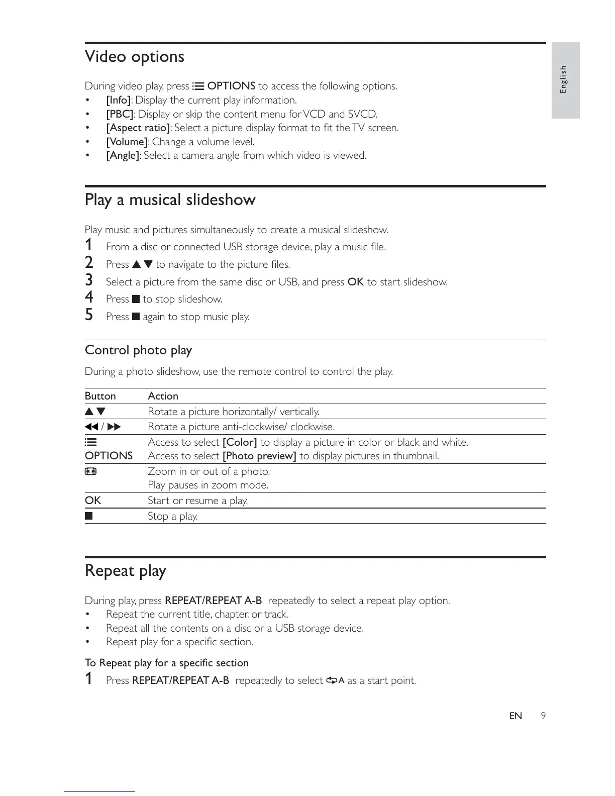 3 Select a picture from the same disc or USB, and press OK to start slideshow.