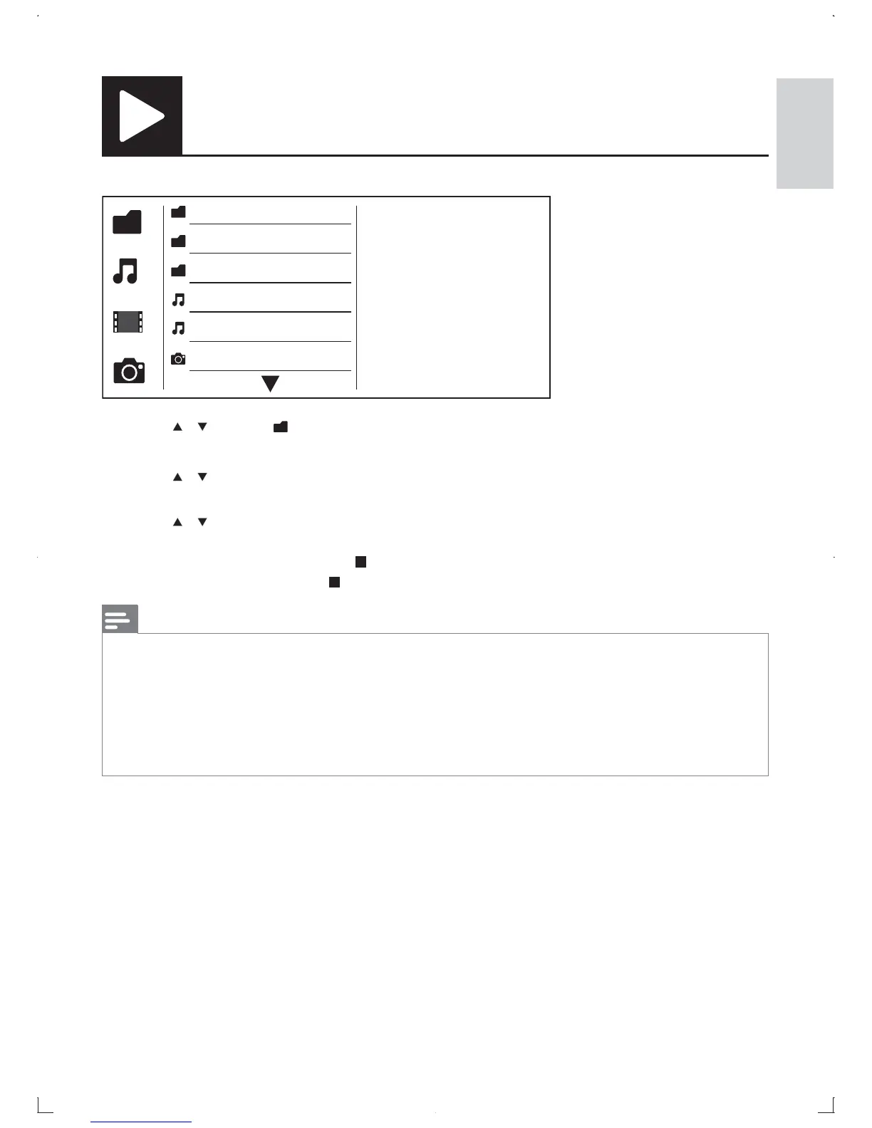 If a large number of files are complied onto one disc or USB storage device, it requires longer time to read •