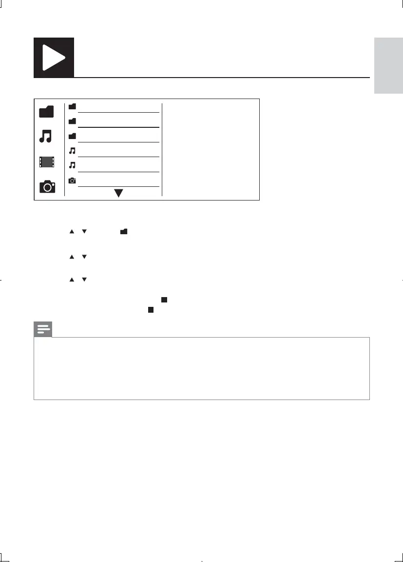 If the music file is saved in a folder or sub-folder, access its directory first. •