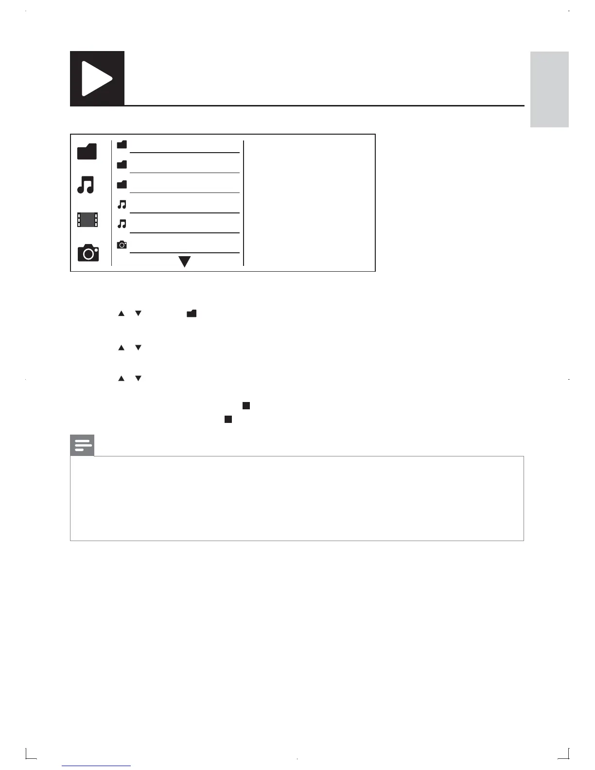 If a large number of files are complied onto one disc or USB storage device, it requires longer time to read •