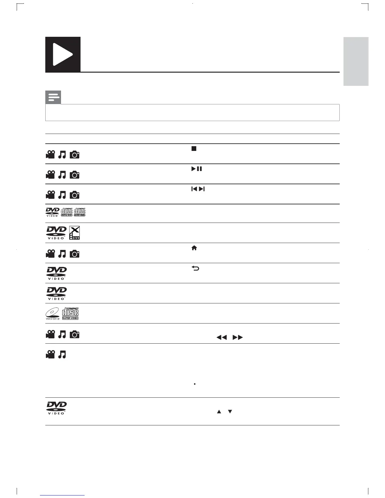 When “ • X” appears, it means that this operation is unavailable for the current media or at the current time.