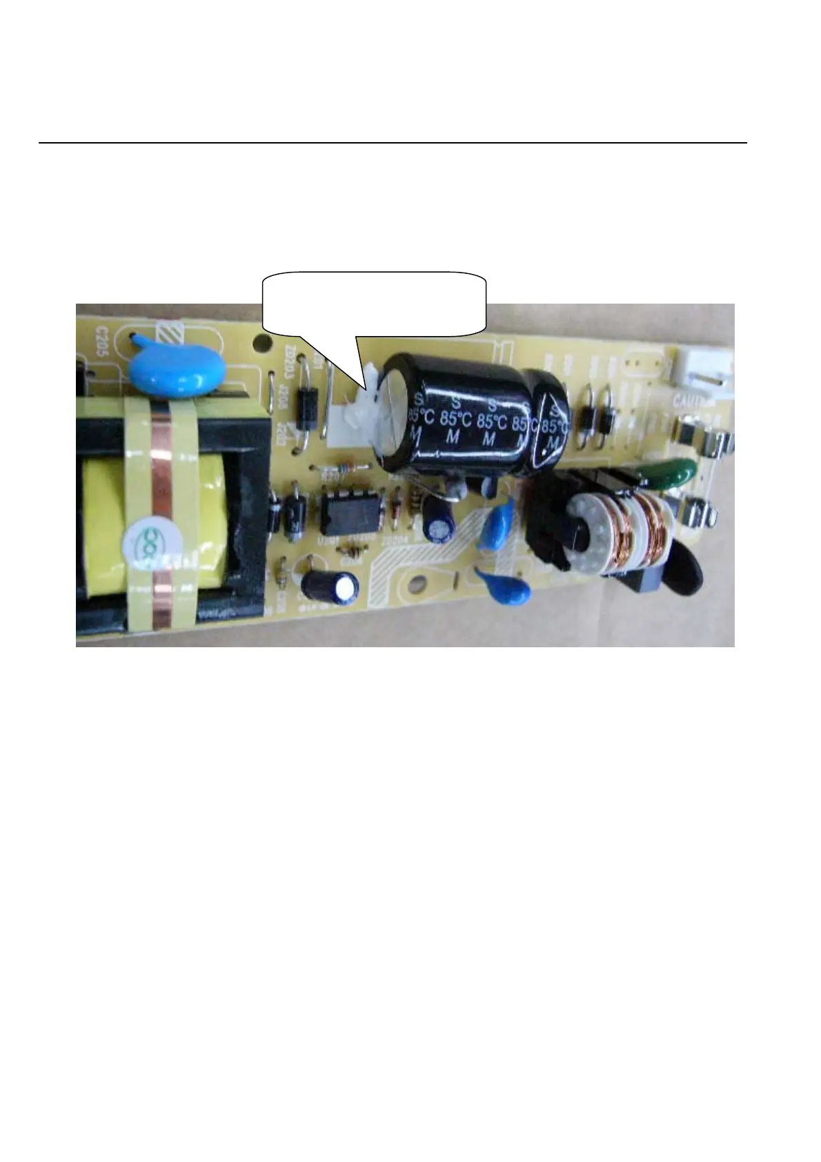Make sure adding silicon glue to fix the capacitor C203 after repairing, ( Avoid the hazard of C203 touching the Top
