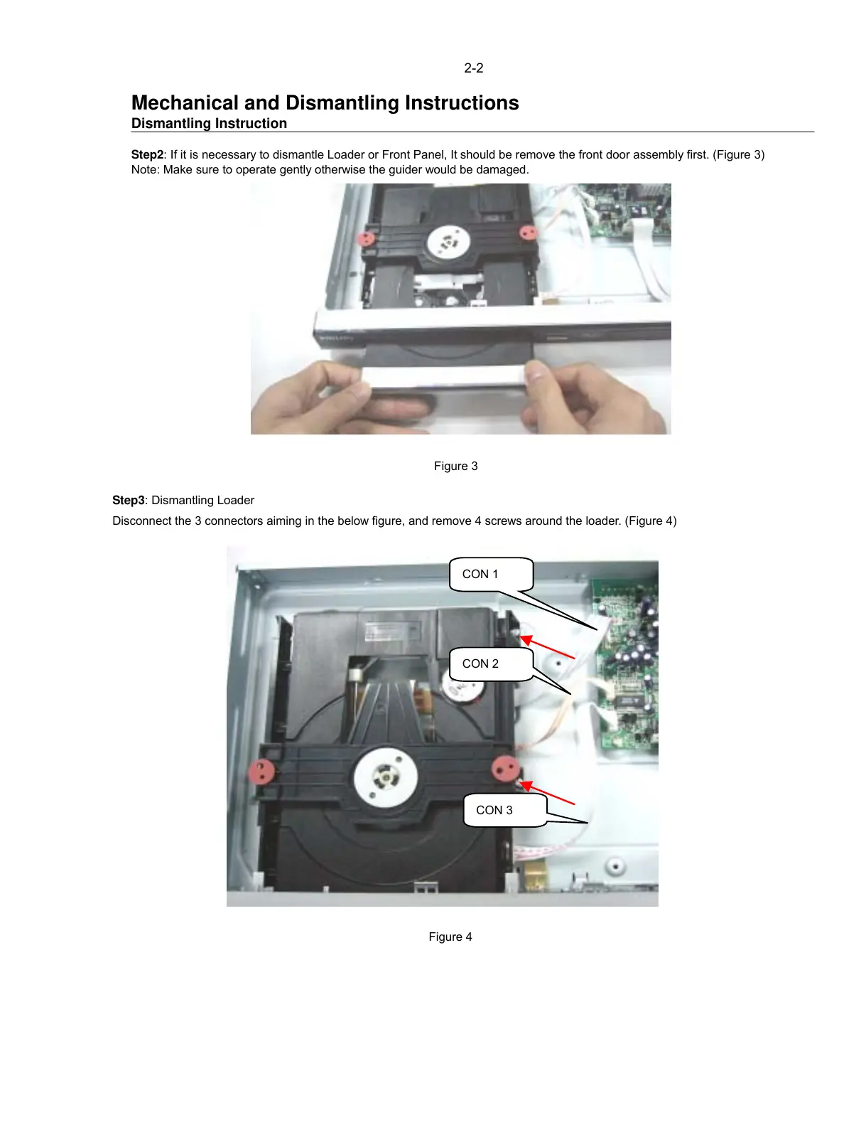 Step2: If it is necessary to dismantle Loader or Front Panel, It should be remove the front door assembly first. (Figure 3)