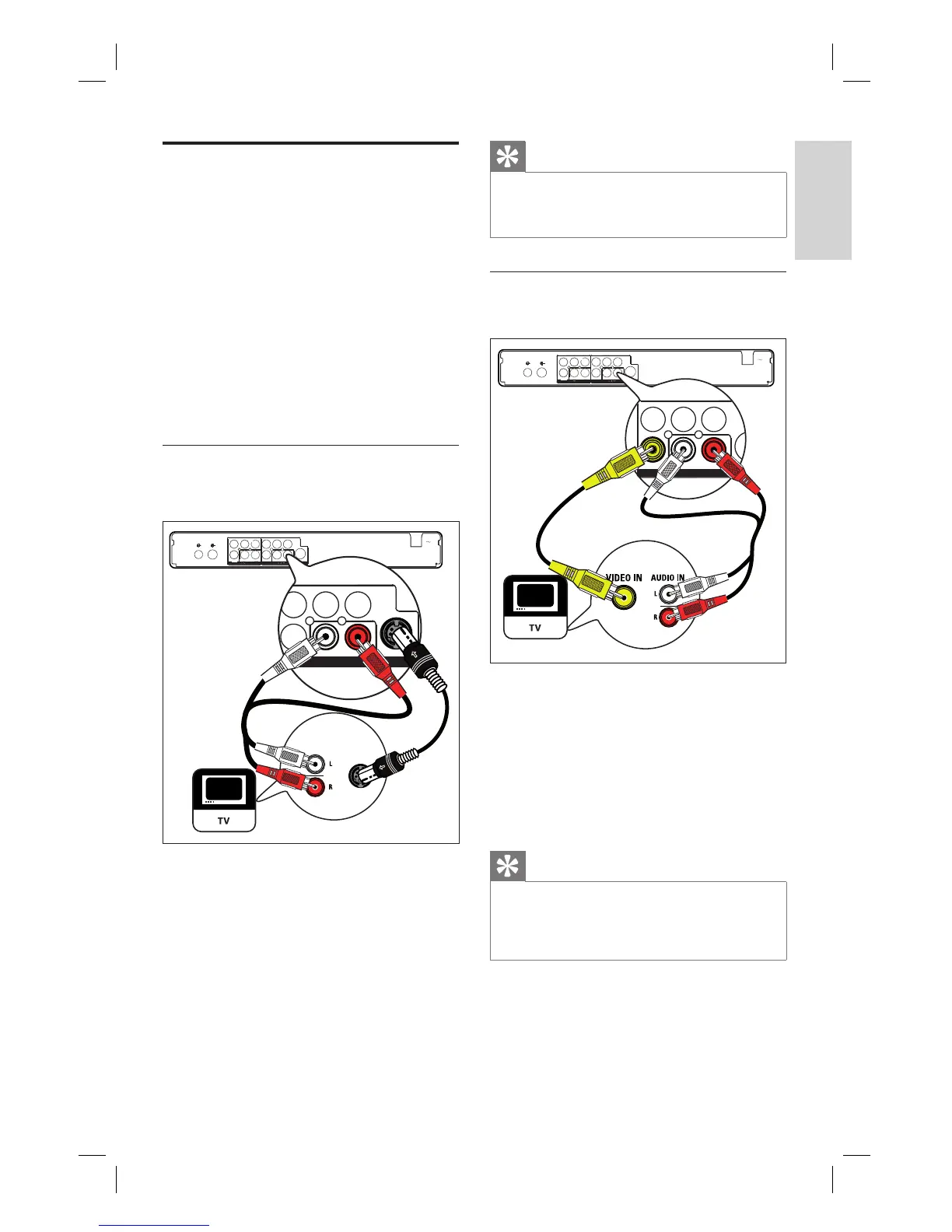 1 Connect a composite video cable (yellow