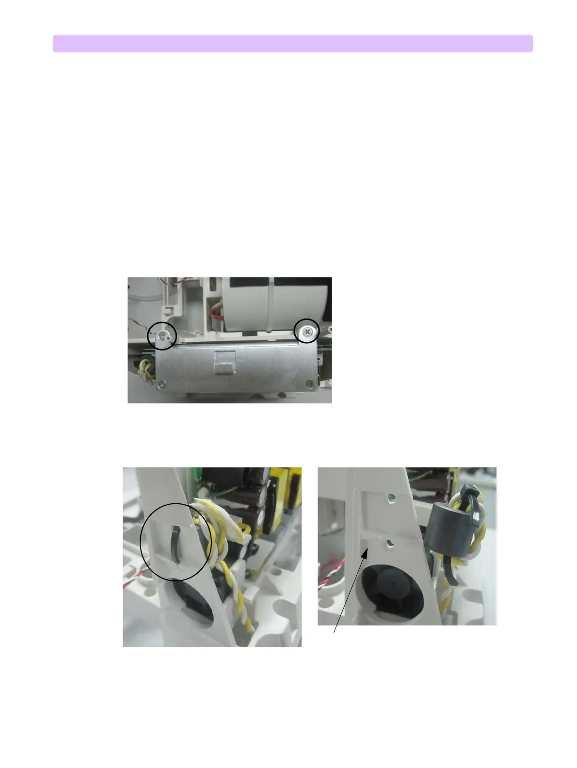 2 Remove the cable tie on the left side of the Power Supply Assembly to loosen the magnet ring. See