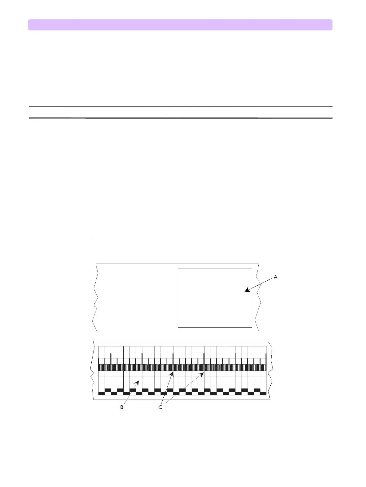 Measure between the long tick marks (area “C”) to verify paper speed. The distance should be