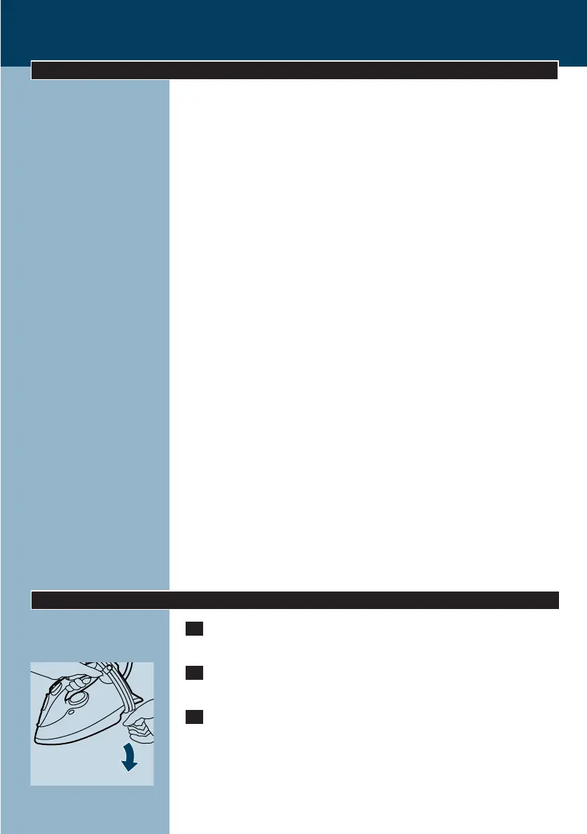 ◗ Ne plongez jamais dans l'eau le fer à repasser ni son socle, s'il est