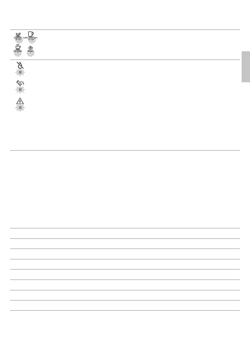咖啡機正在加熱和/或試著排出流入咖啡機的空氣。 請靜待所有飲品燈號陸續亮起。