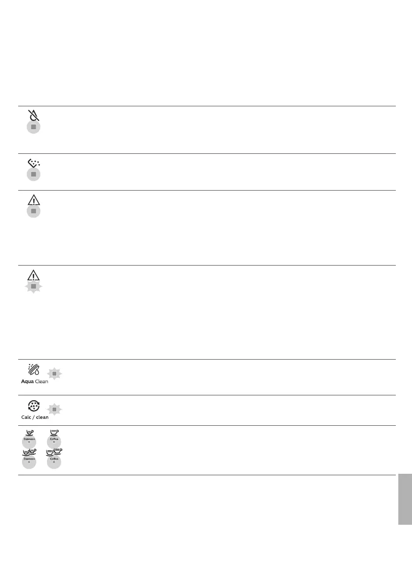 A luz de descalcificação apresenta uma intermitência lenta: Descalcifique a máquina.
