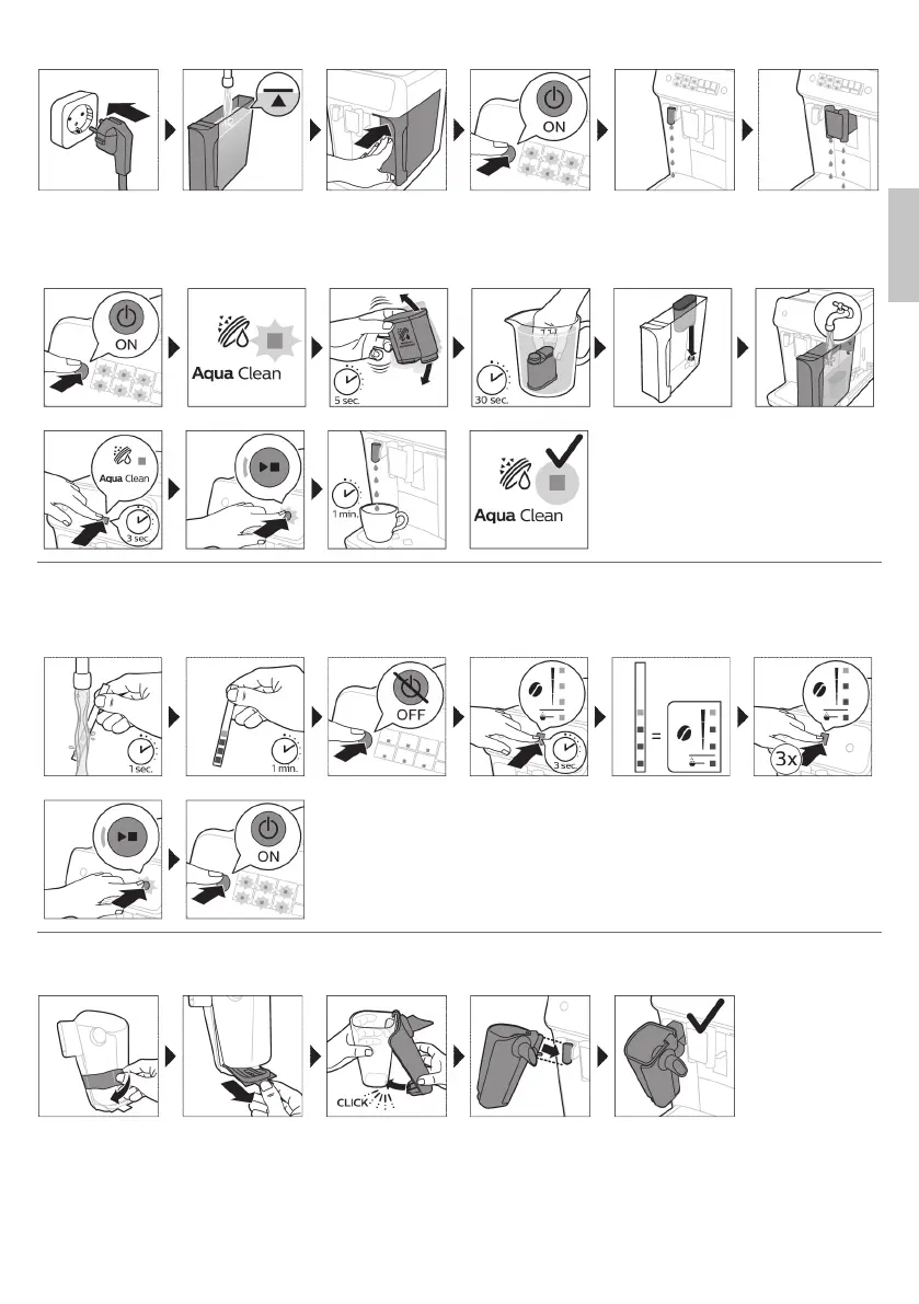 Philips EP1220/00 - 2. AquaClean su filtresini etkinleştirme (5 dk.); 3. Su sertliğini ayarlama; 4. LatteGoyu birleştirme (yalnızca belirli modellerde)