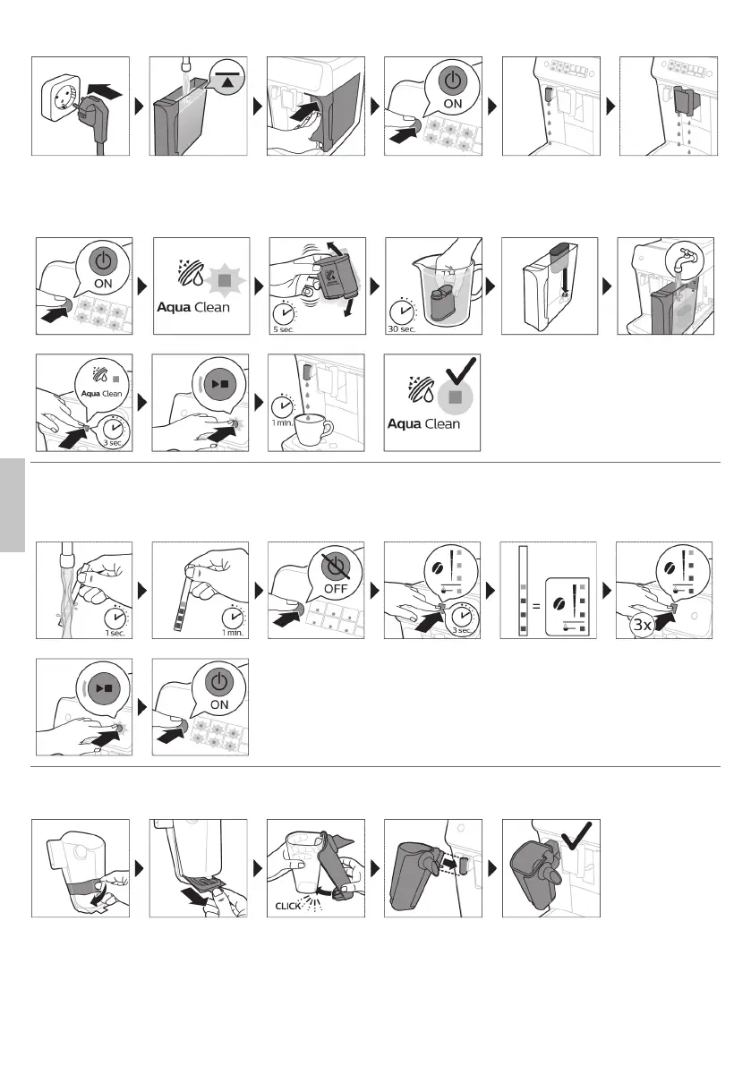 Philips EP1220/00 - 2. فعال‌سازی فیلتر آب AquaClean (5 دقیقه); 3. تنظیم سختی آب; 4. سوار کردن LatteGo (فقط در برخی مدل​های خاص)