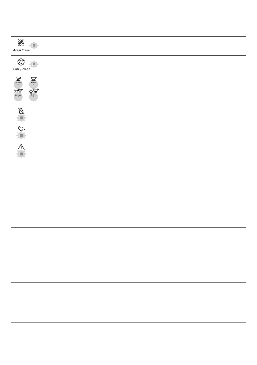 Avkalkingslampen blinker sakte: Avkalk maskinen (se 'Fremgangsmåte for avkalkning