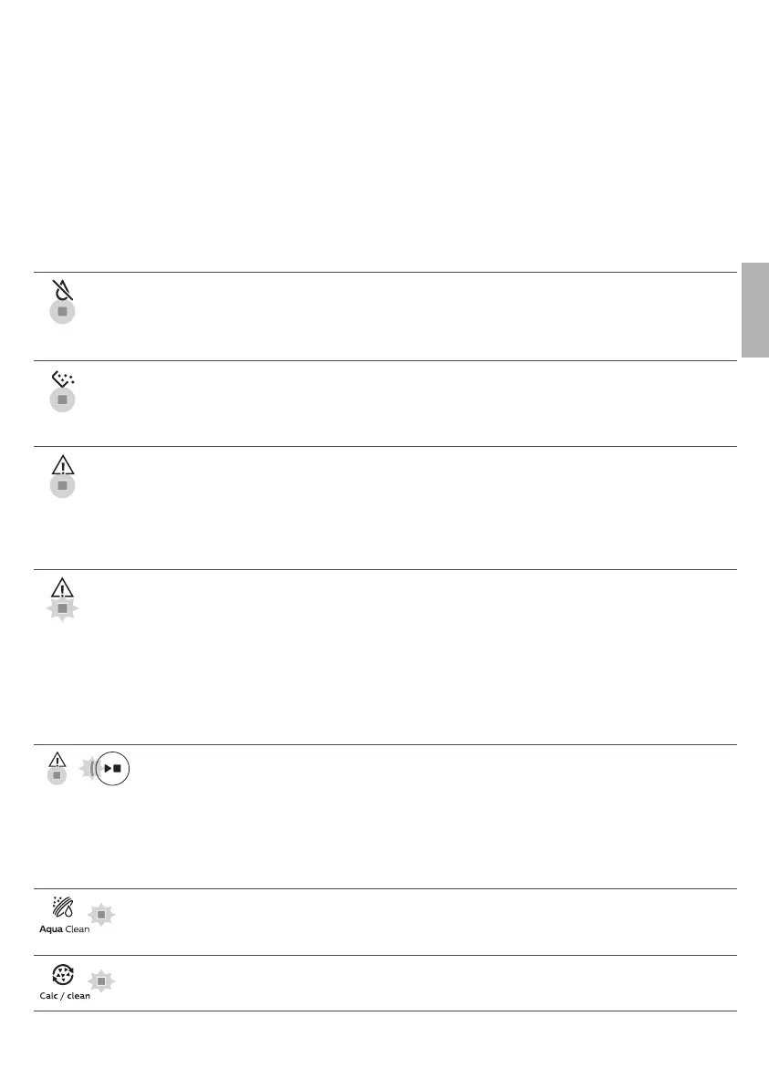 Η λυχνία αφαλάτωσης αναβοσβήνει αργά: Αφαιρέστε τα άλατα από τη μηχανή (βλέπε