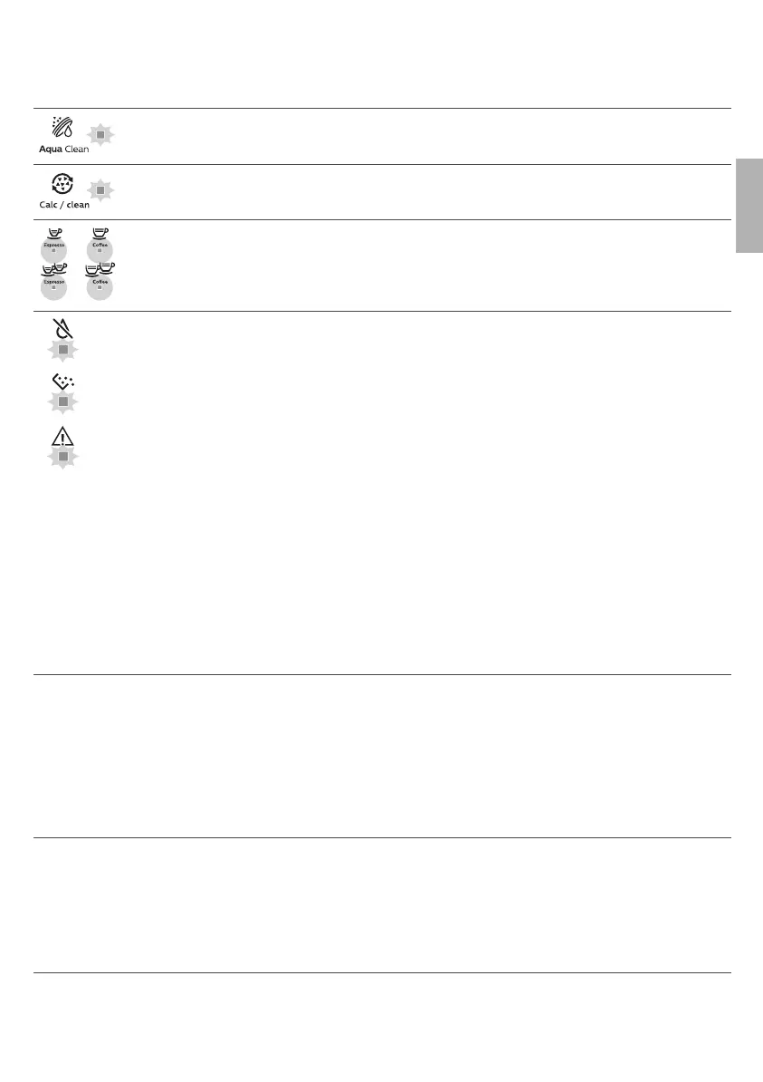AquaClean-indikatoren blinker: Placer eller genplacer AquaClean-vandfilteret, og
