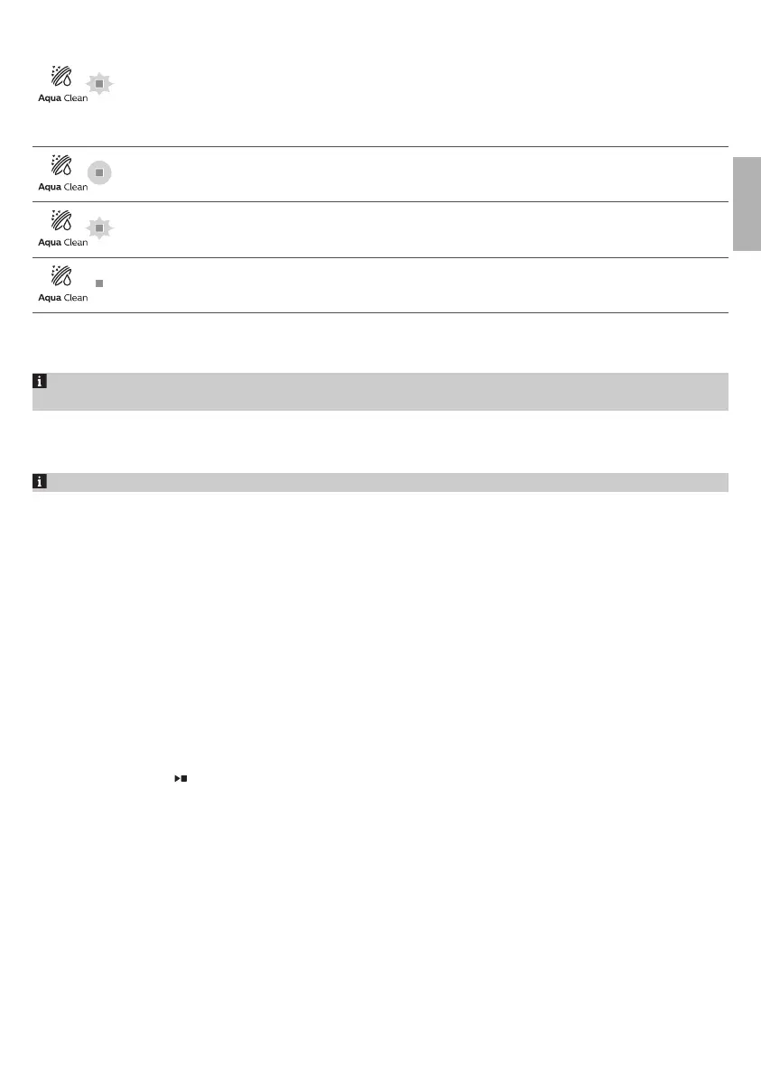 9 Tryk på ikonet AquaClean i 3 sekunder (fig. 44). Startindikatoren begynder at pulsere.