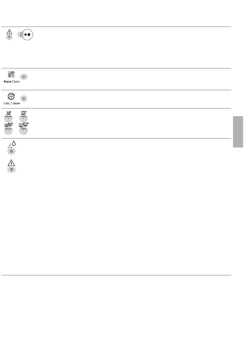 El indicador "depósito de agua vacío"/"vaciar recipiente posos" y el indicador de