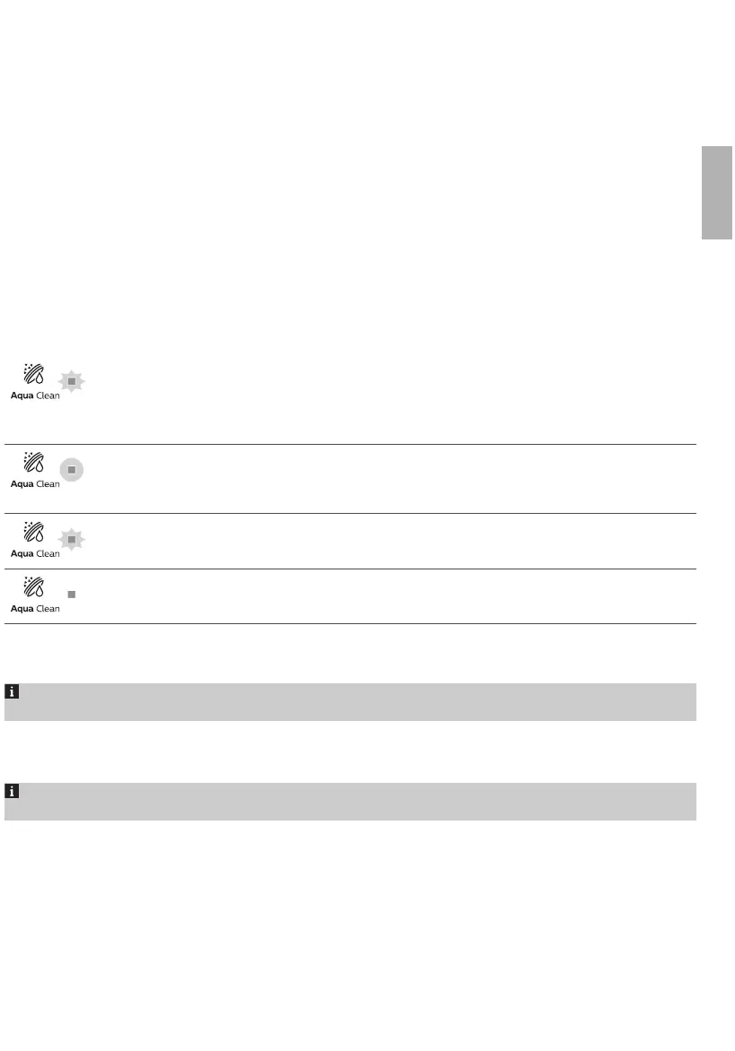 du inte aktiverar ett AquaClean-vattenfilter släcks lampan automatiskt efter en