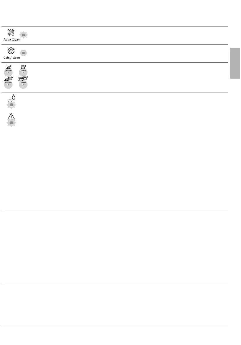 Afkalkningsindikatoren er tændt: Afkalk maskinen (se 'Afkalkning (30 min.)').