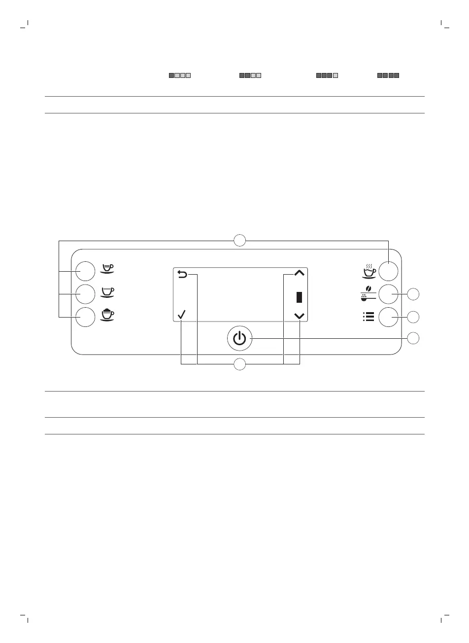 1. Botões de bebida de um toque 4. Botão ligar/desligar