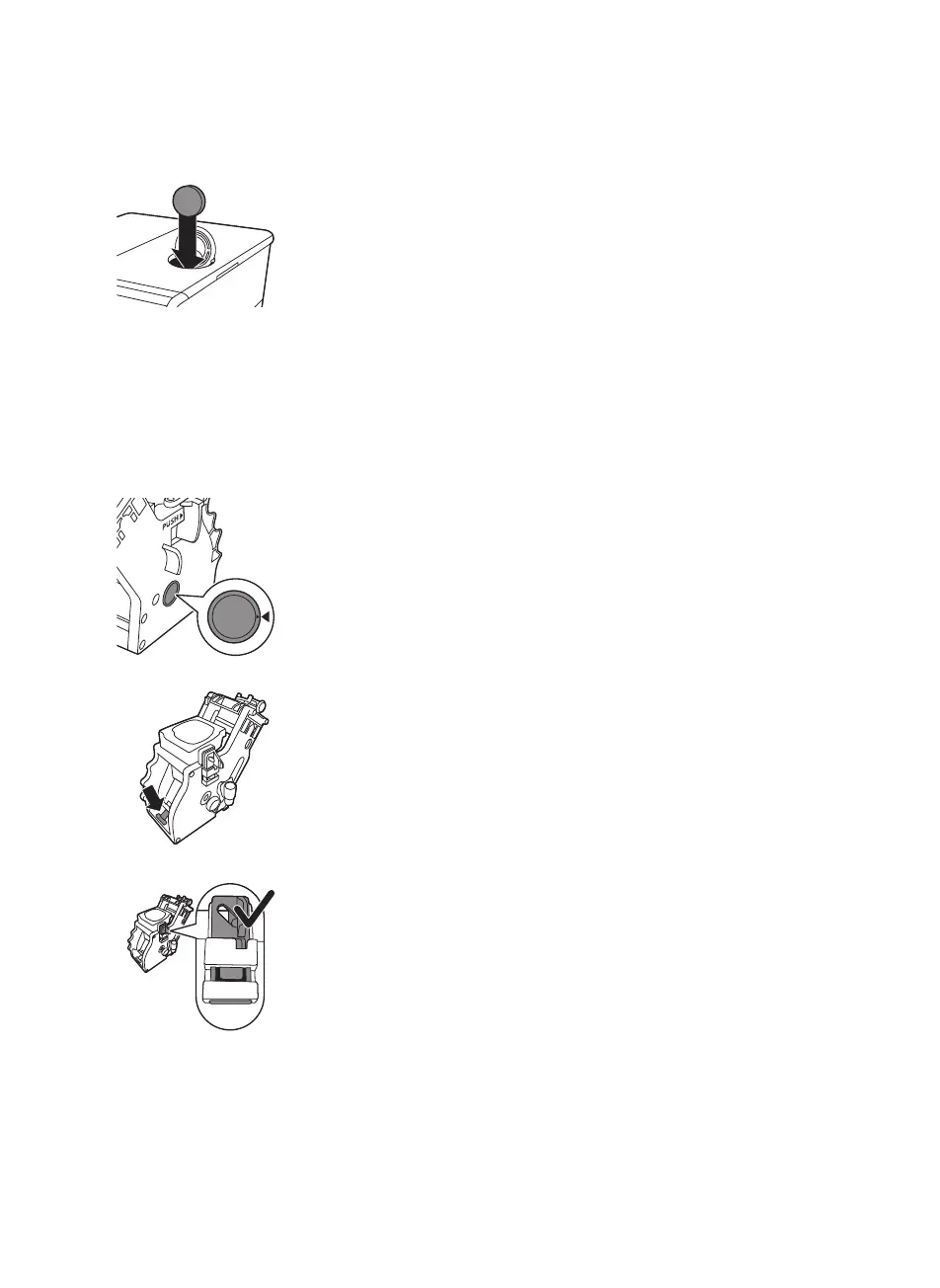 2 Make sure that the yellow locking hook of the brew group is in the correct