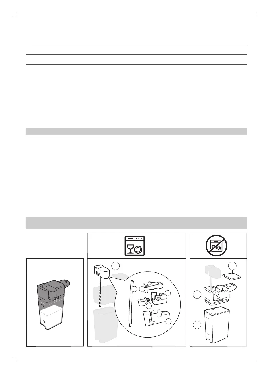The milk carafe consists of multiple components. Disassemble all components once a week and clean