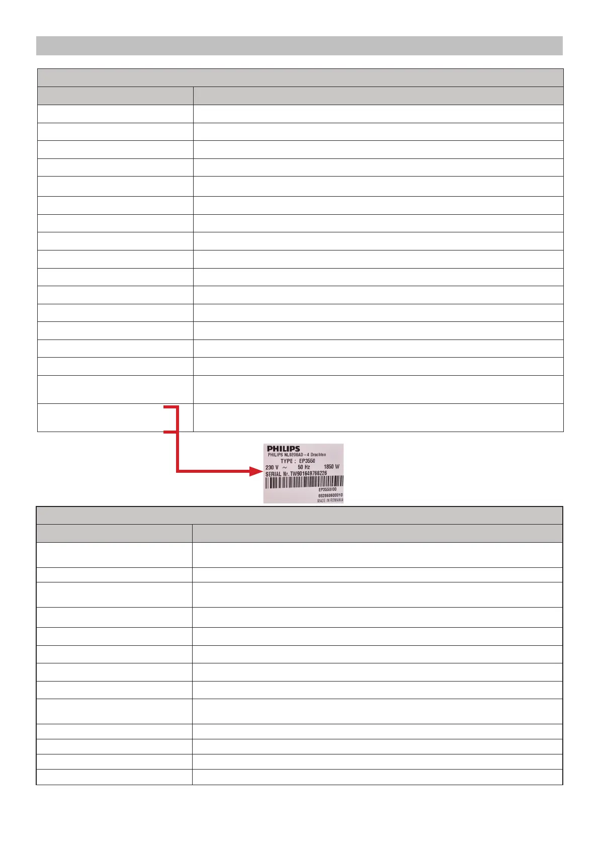 Data stored on the below label placed inside the service door