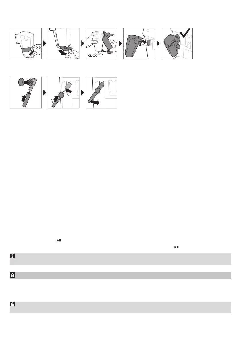1 Fill the water tank with tap water and fill the bean hopper with beans.