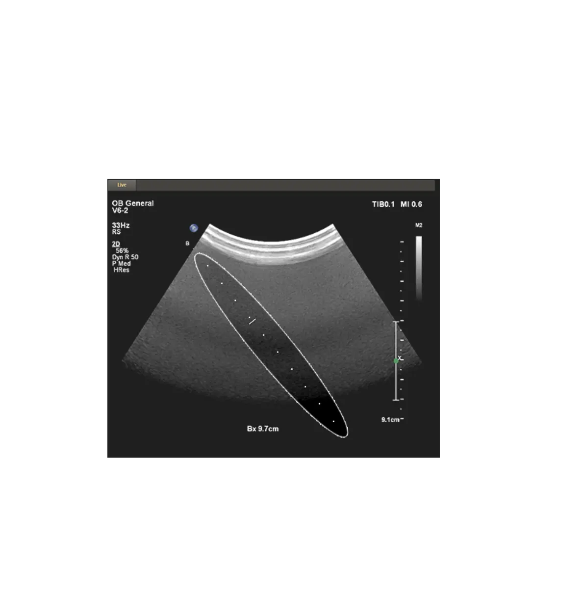 guide to the depth cursor appears at the bottom of the imaging screen.