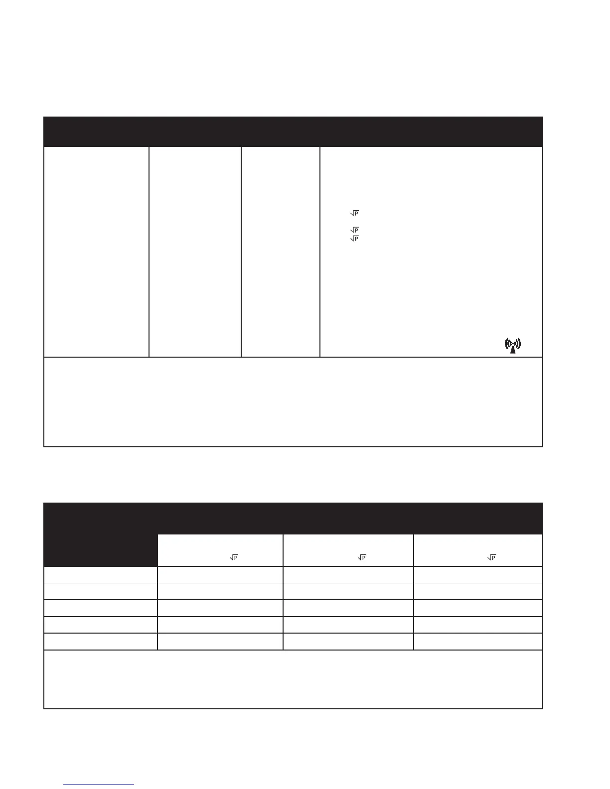 (inMeter(m)) mit Hilfe der Gleichung in der entsprechenden Spalte abgeschätzt werden. Hierbei ist P die maximale Nennausgangsleistung