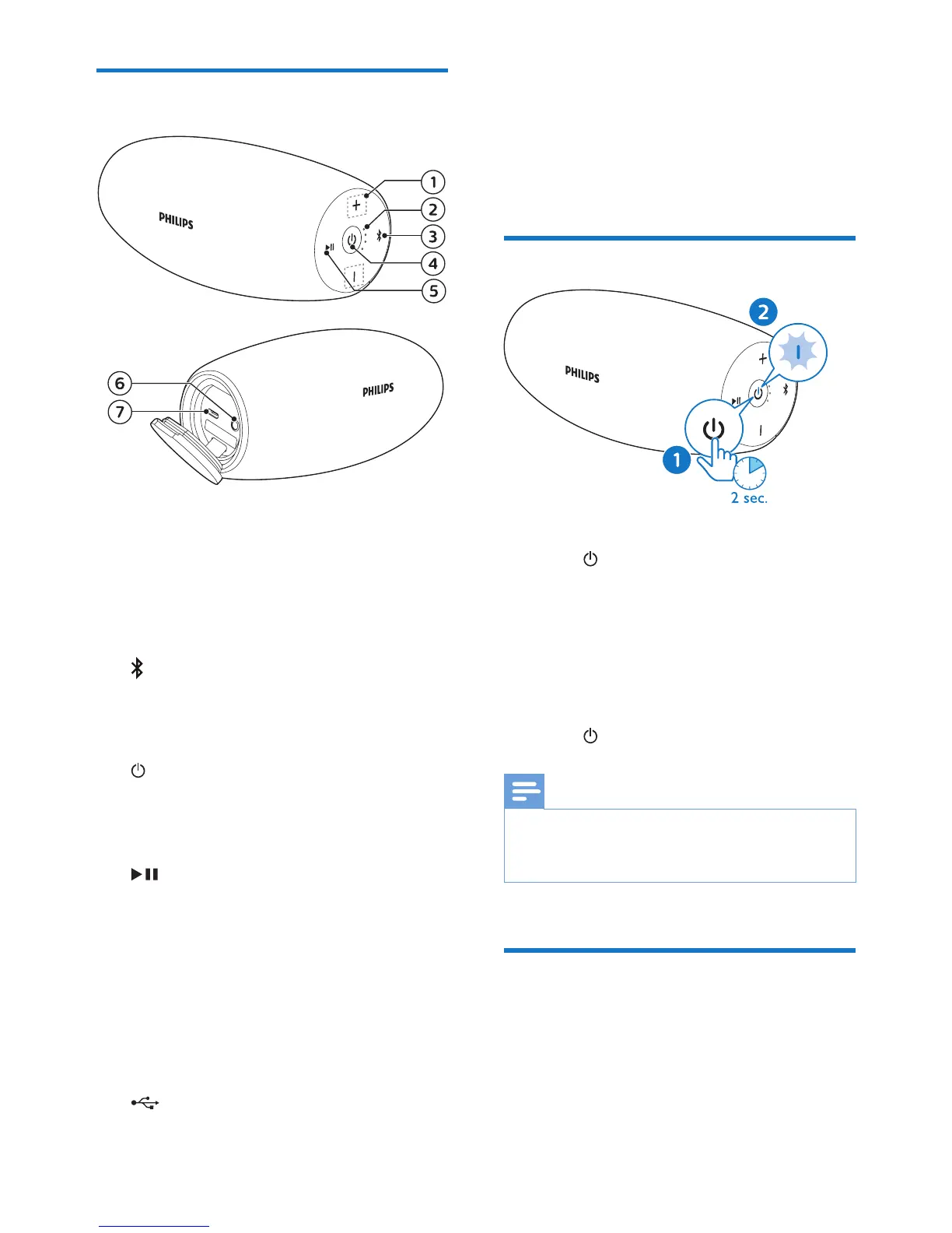 • To turn the speaker on, press and