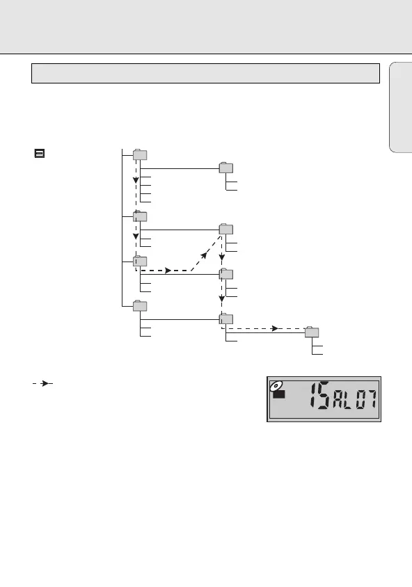 the MP3 CD unit display, and the playback sequence of albums and tracks on single