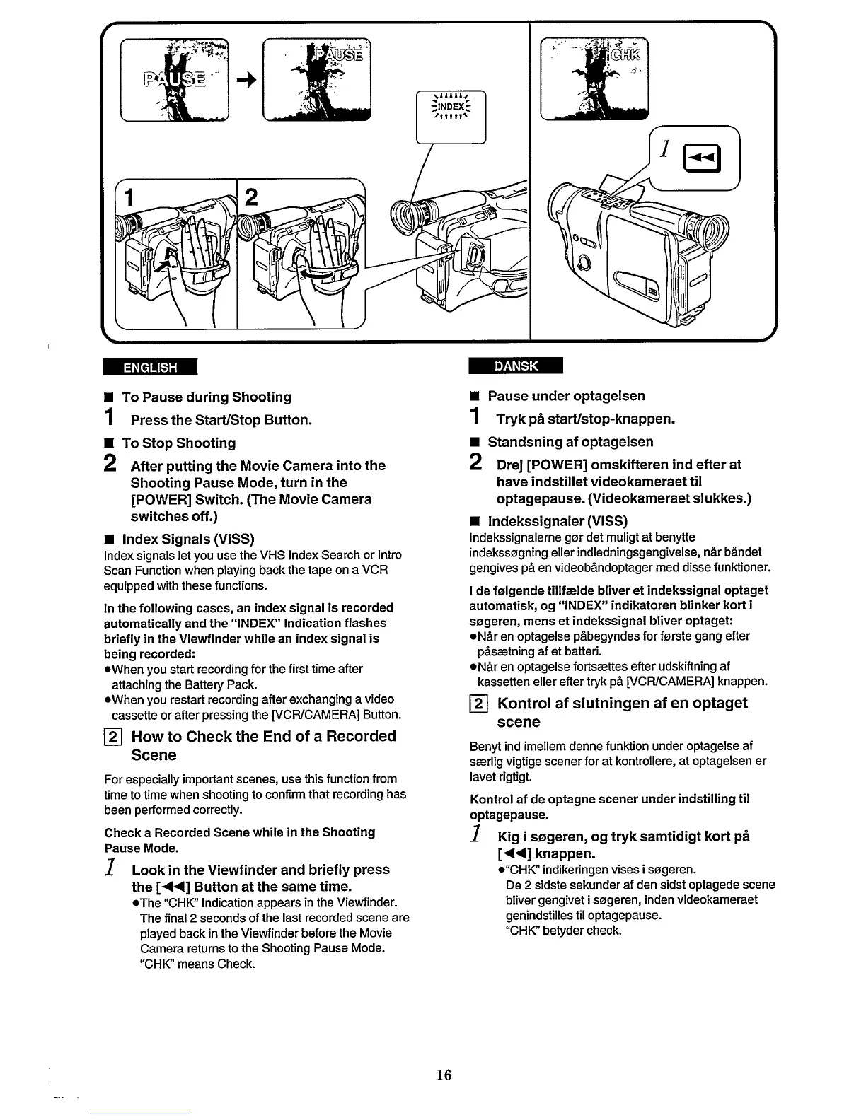 Philips Explorer M624/21 - To Pause During Shooting; Index Signals; How to Check the End of a Recorded Scene