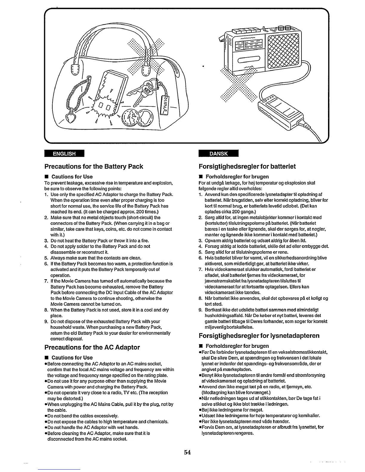 Philips Explorer M624/21 - Precautions for the Battery Pack; Precautions for the AC Adaptor