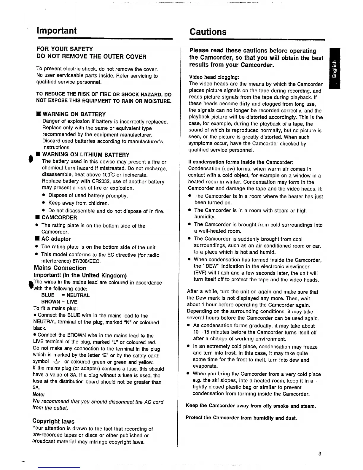 Philips Explorer VKR6853 - Cautions; Video Head Clogging; If Condensation Forms Inside the Camcorder
