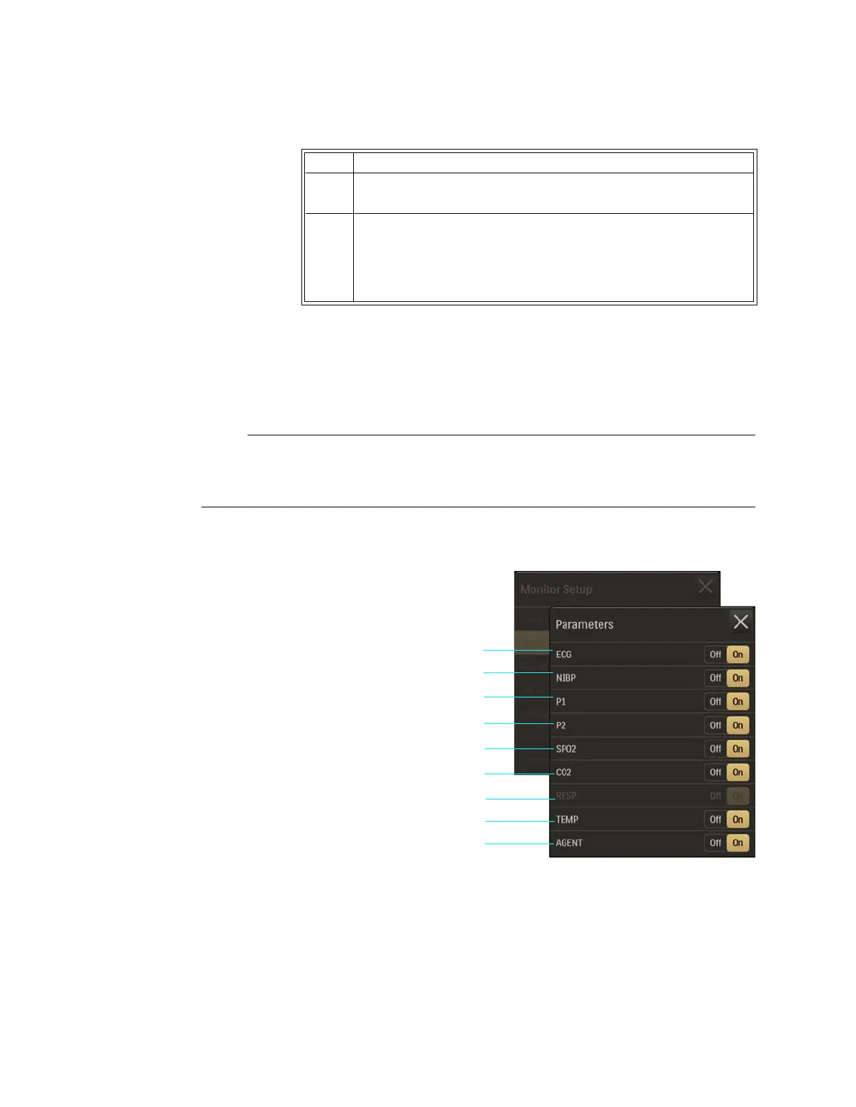 – OffturnsofftheECGparameter.(Heartrate(HR)willremainintheVSbox,allowingit