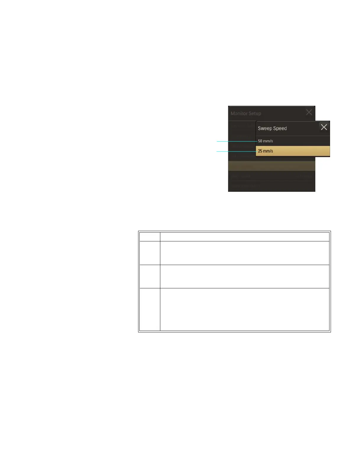 2OntheMonitorSetupmenu,selectSweepSpeed.