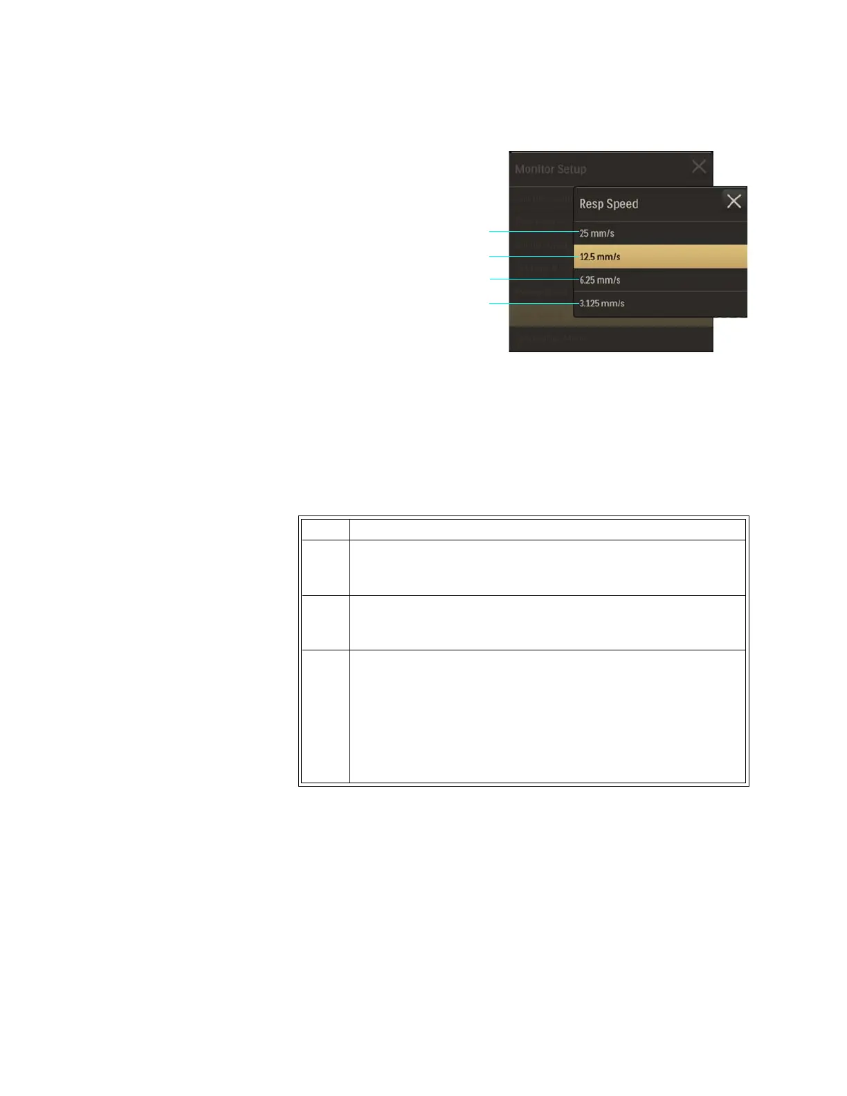 TheRespSpeedmenuappears.Thecurrentsettingishighlighted.