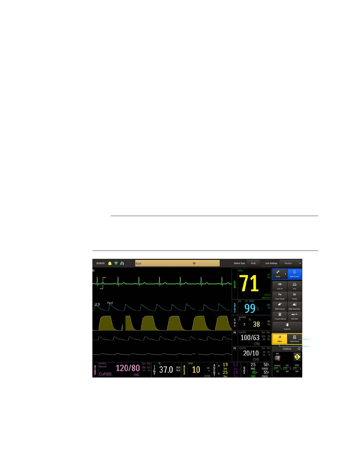 When an alarm is indicated, always confirm the alarm conditions with clinical observations of the